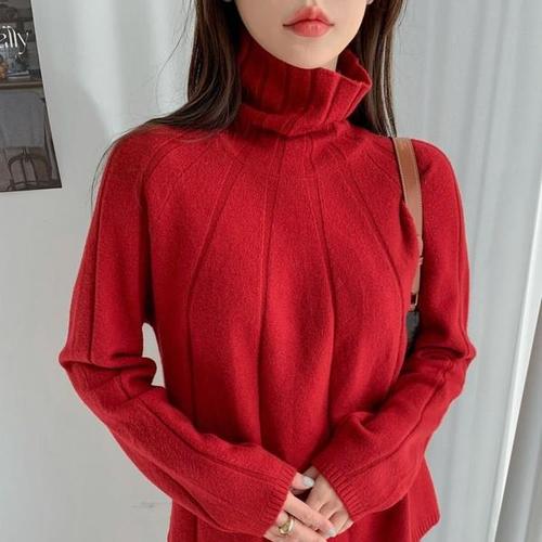 [신상오픈런]키헬로 여성 스웨터 버건디 캐시니트 터틀넥 크리스마스
