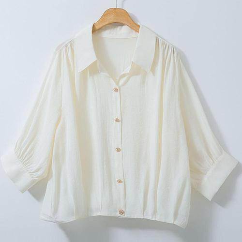 여성 카라넥 밑단스트링 시원한 7부소매 루즈핏 블라우스 셔츠 CAT-WBL-4353-크림