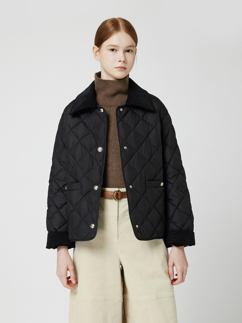 [씨씨콜렉트] 코듀로이 카라 배색 경량 구스 다운 BK_C254PSG181
