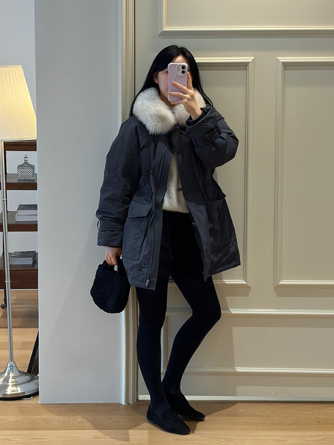 [씨씨콜렉트] 폭스퍼 벨티드 하프 다운 C254PSG185