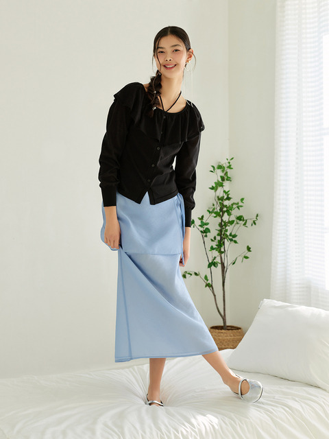 떳다그녀 럭시 매듭 리본 언발 사이드 랩치마 하객룩 데이트룩 로맨틱 봄 가을 스판 롱스커트