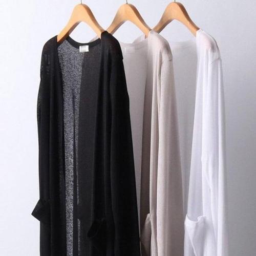 [XBI6M0L6]빅사이즈 305I822S 오픈 포켓 쿨 롱가디건 중년