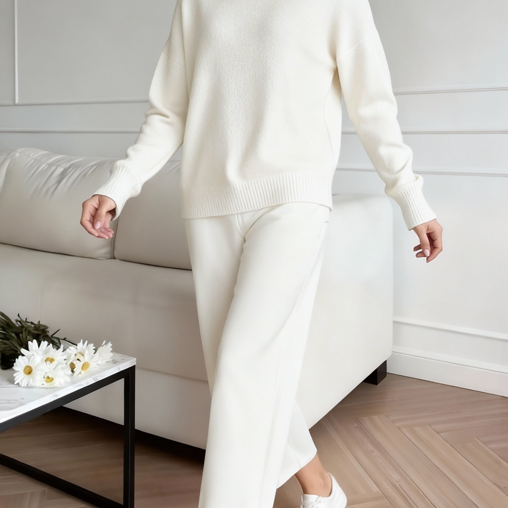 TEMU BK0820010 디렉셔널 펀드 겨울 캐주얼 스웨터 코트 하이넥 여성 투피스 세트, 하이넥 및 9점 팬츠 탄성 조거 슈트, 편안한 루즈핏 긴팔 풀오버 의상.