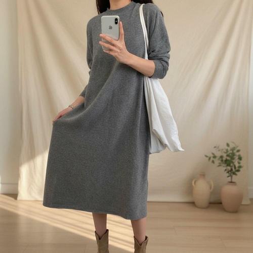 [다잇템]여성 드레스 울비스코스 민무늬 롱 밑트임