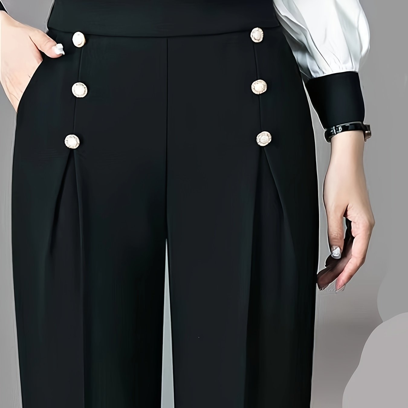 TEMU 여성 봄 가을 정장 바지 고탄력 원단 슬림핏 하이웨스트 일자 블랙 팬츠 단추 디자인 출근 직업 시크 일상 통근 슬림소녀 SLIM GIRL