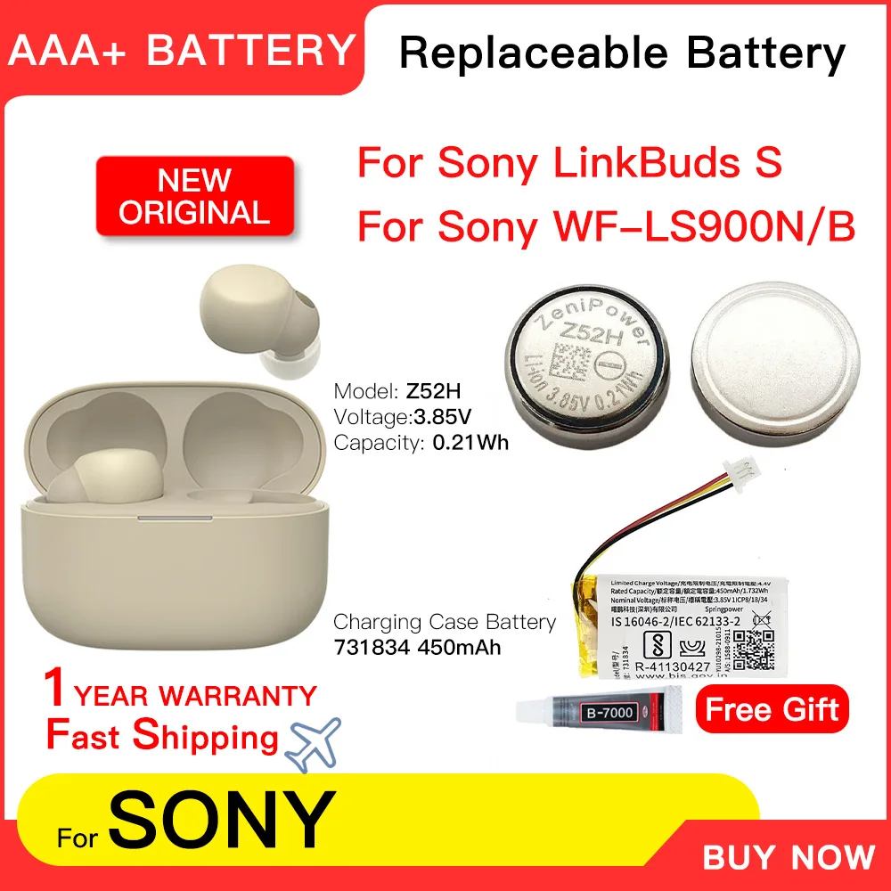 원래 731834 Sony LinkBuds S WFLS900N/B용 ZeniPower 1240 Z52H 3.85V 배터리 진정한 무선 이어버드 헤드폰 배터리 + 선물
