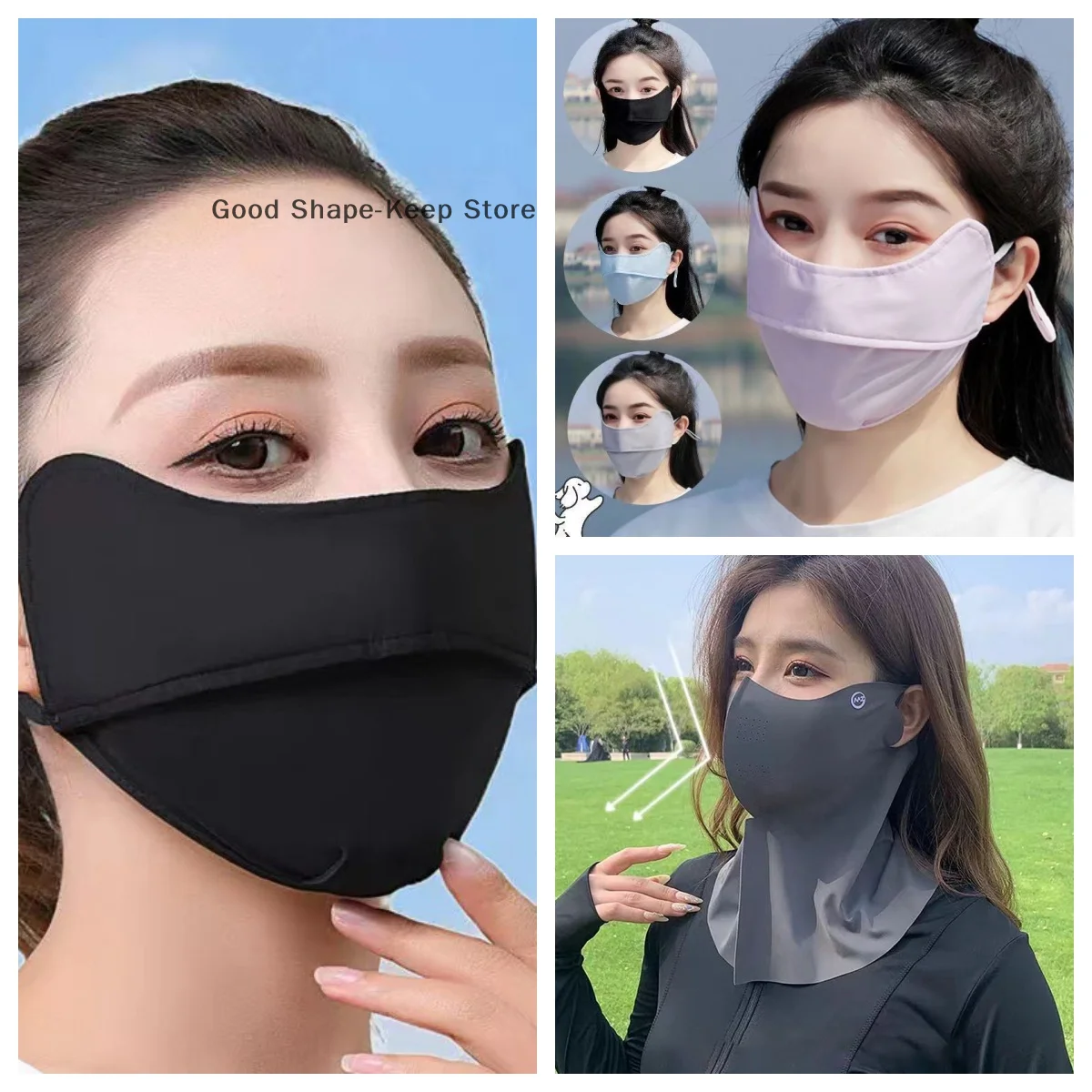 여성 남성 아이스 실크 자외선 차단 마스크 여름 UV 보호 사이클링 페이스 커버 통기성 세탁 가능 야외 스포츠 스카프 반다나