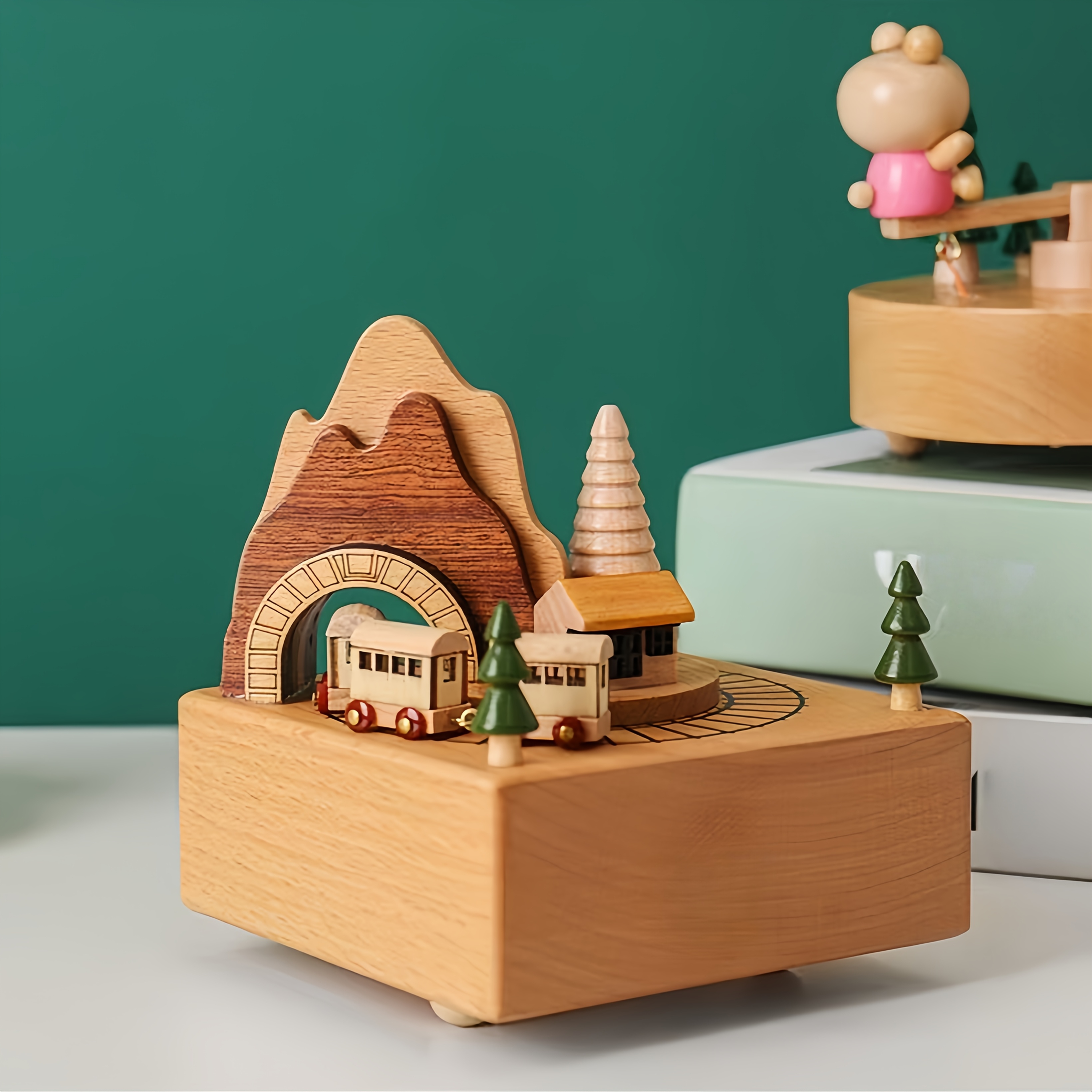TEMU 스카이 시티 회전 불꽃 기차 나무 뮤직 박스, 생일 & 크리스마스 선물용 8음계 뮤지컬 장식품, 데스크탑 장식, 홈 , 축제 장식