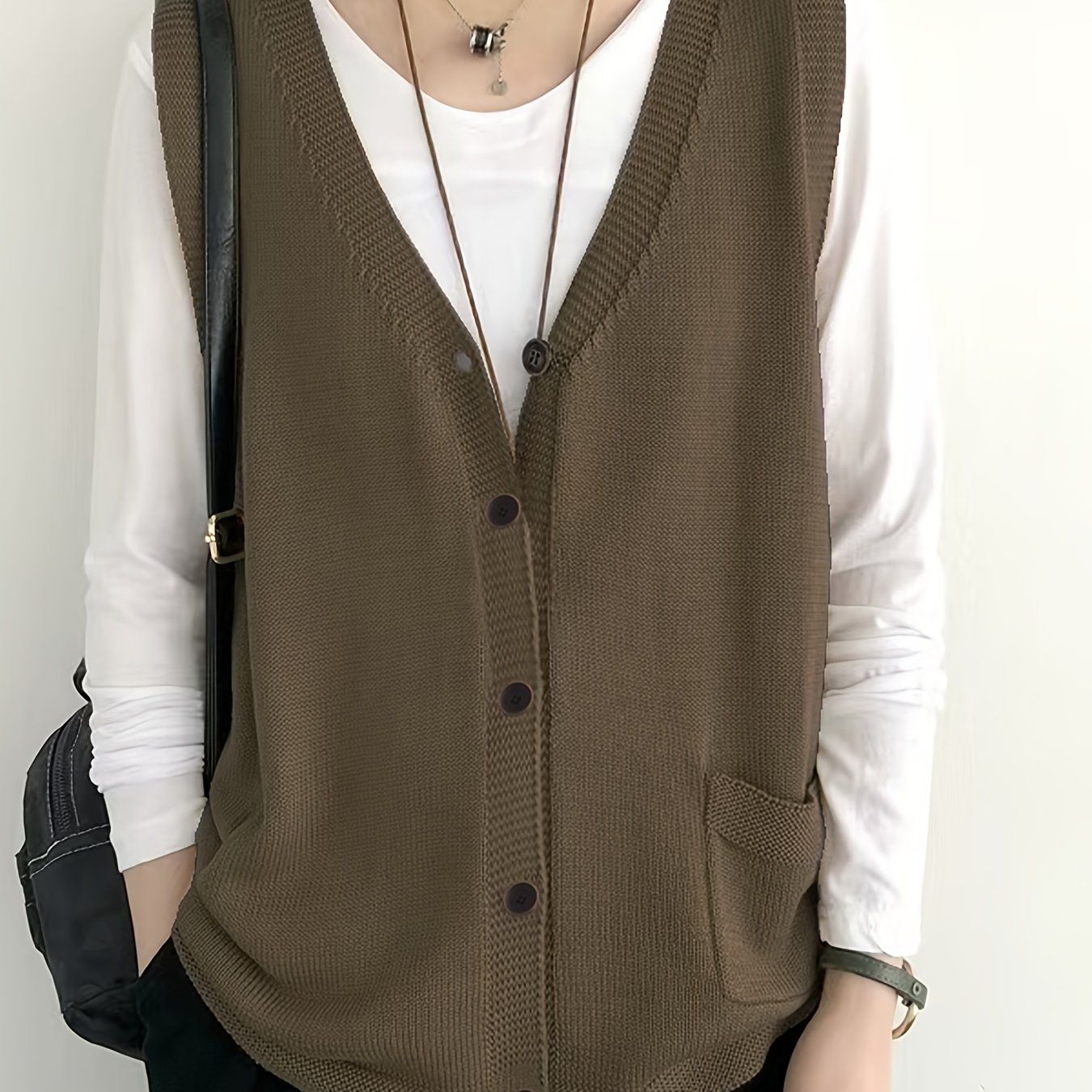 TEMU 여성 플러스 사이즈 루즈핏 민소매 가디건 조끼, 싱글 포켓 및 V넥