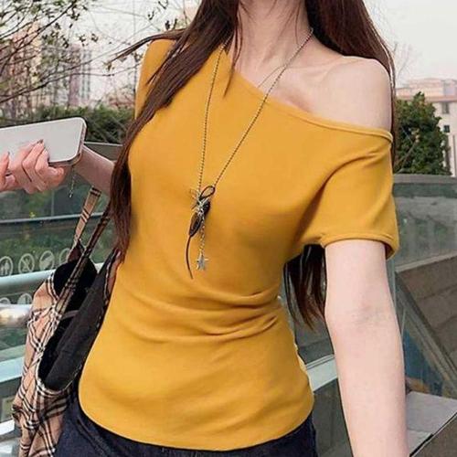 [에이치플러스몰]여성 여름 캐주얼 원숄더 오프숄더 슬림핏 반팔 티셔츠