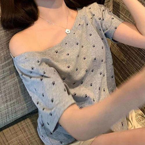 비대칭 티셔츠 새로운 여성 패션 트렌드 매운 소녀 연예인 기질 오프 숄더 탑