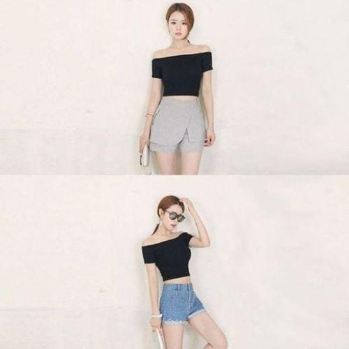 [에이치플러스몰]여성크롭반팔티 3컬러 1P 어깨트임 여름 크롭티 반팔