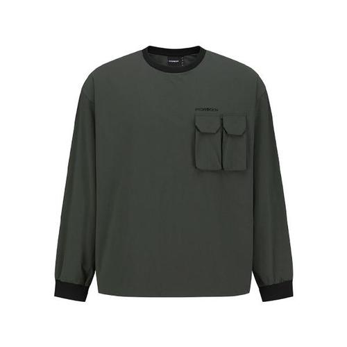 [하이드로겐][텍가 179000원] 하이드로겐 공용 아웃포켓 패치 우븐 맨투맨 FM1H31D3FM201-GN