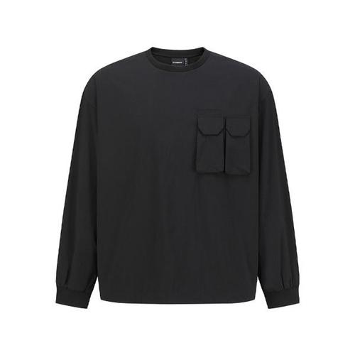[하이드로겐][텍가 179000원] 하이드로겐 공용 아웃포켓 패치 우븐 맨투맨 FM1H31D3FM201-BK