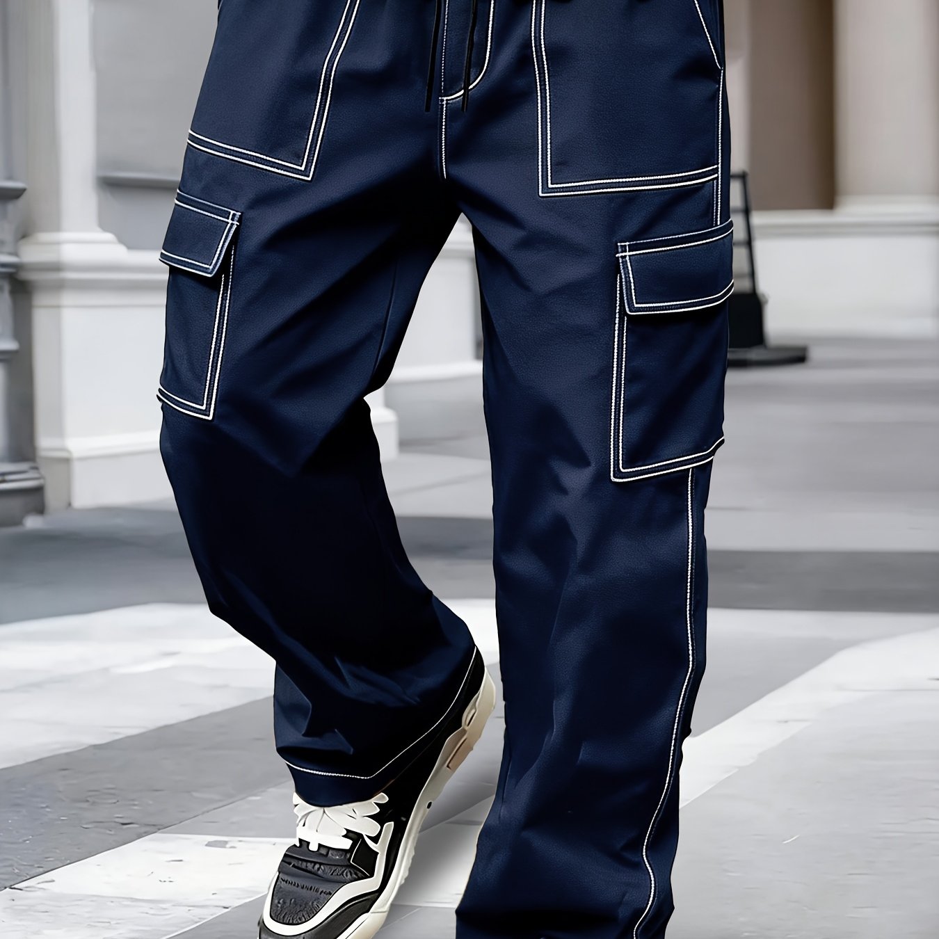 TEMU 남성용 캐주얼 카고 팬츠, 블랙 드로스트링과 컬러 블로킹 + 입체적인 카고 포켓, 부드러운 원단으로 편안한 착용감, 탄력 있는 허리밴드로 모든 체형에 적합, 키를 짧게 보이지 않는 커프드 밑단, 출퇴근 및 야외 활동에 적합한 다용도 팬츠