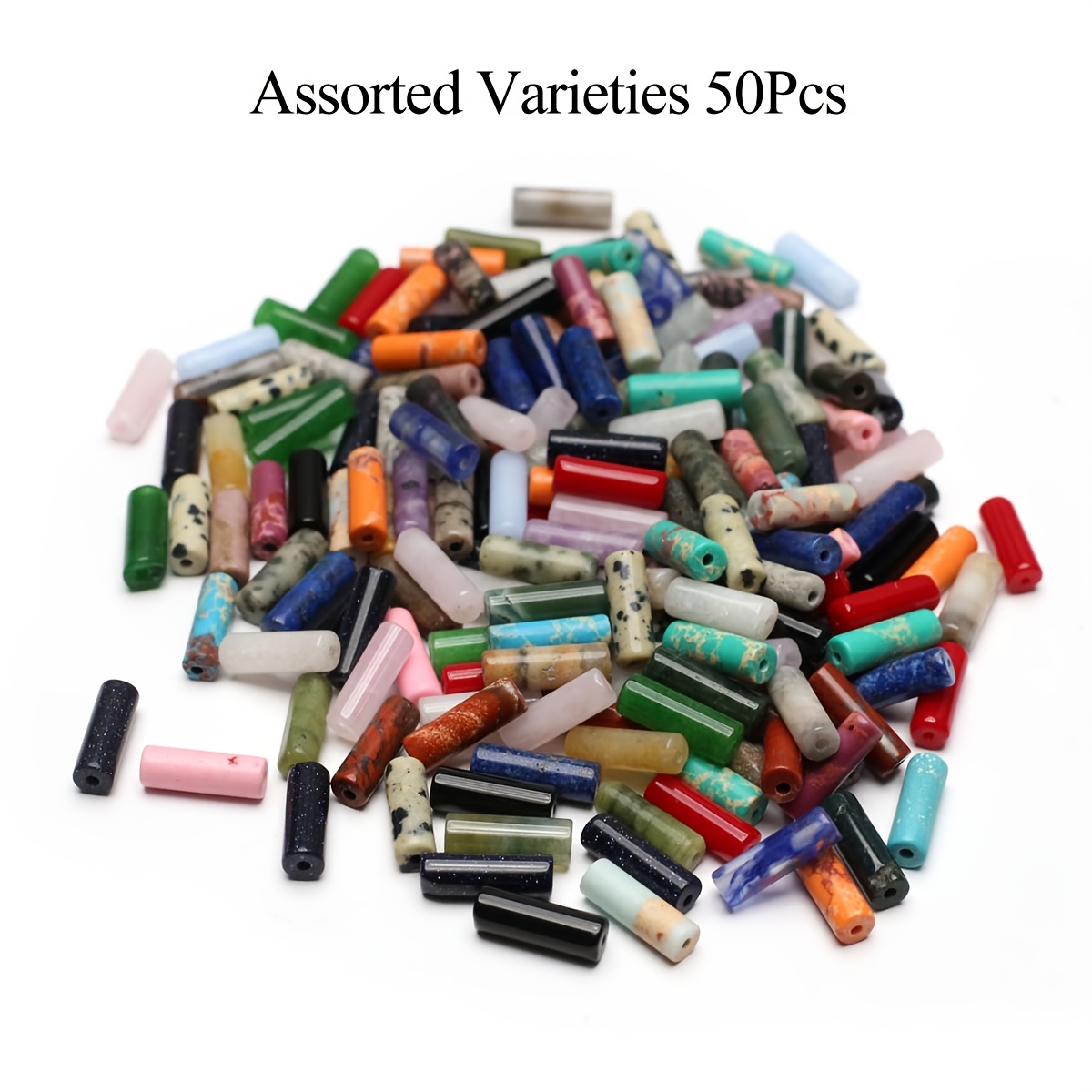 TEMU 50개입 소형 천연석 원통형 구멍 비즈, 다양한 색상의 스타일 디자인. 각 비즈 크기: 1.3×0.45Cm, 목걸이, 팔찌 제작에 적합