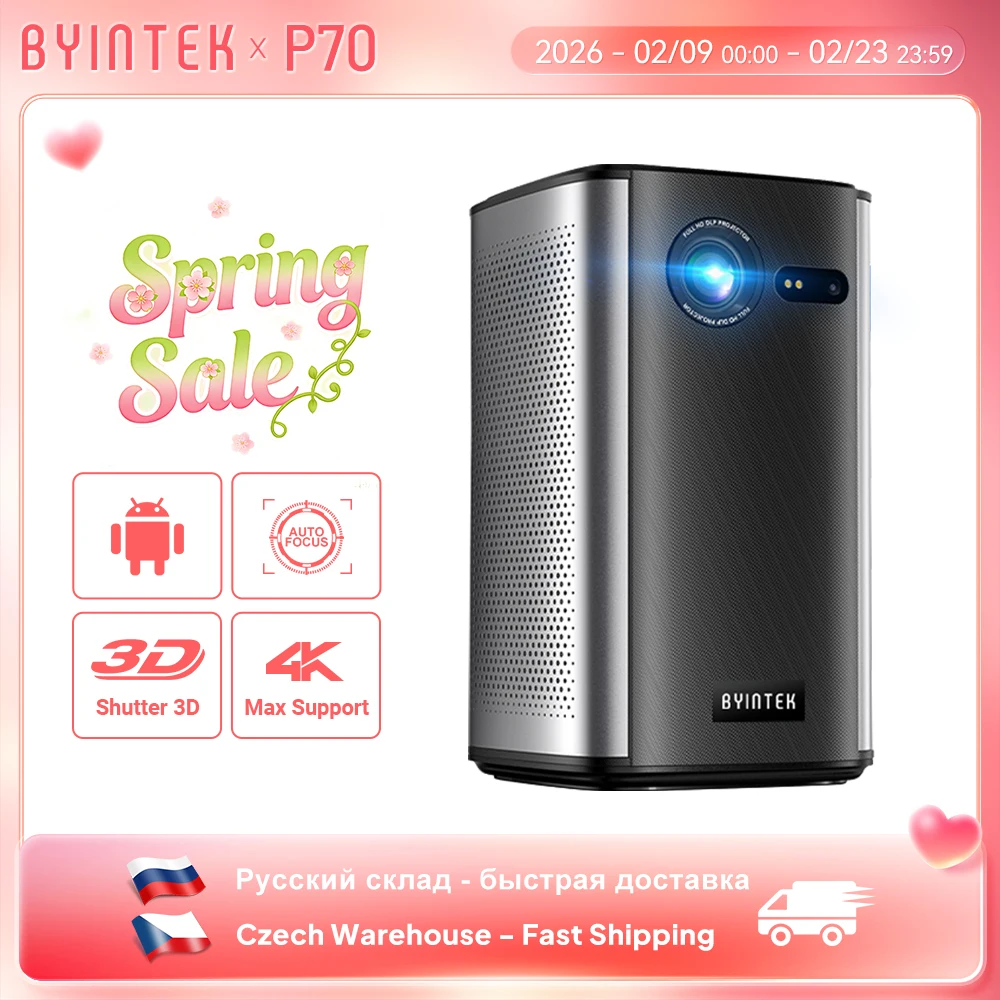 BYINTEK 미니 휴대용 프로젝터 DLP 자동 초점 스마트 안드로이드 와이파이 LED 1080P 홈 시어터 비디오 프로젝터, 배터 포함, P70 3D 4K