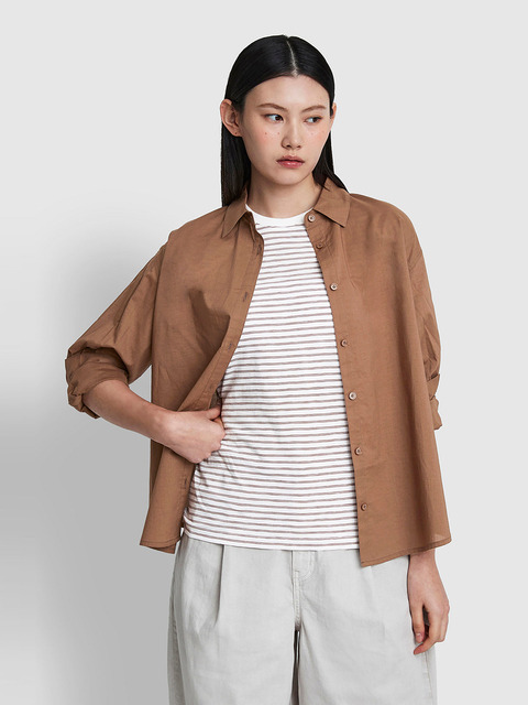 [자주 라이프웨어] [JAJU/자주] 여 라이트코튼 긴팔 셔츠_브라운