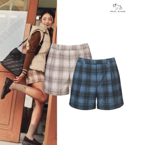 [힐크릭]여성골프웨어 골프반바지 헨리 잔체크 하프팬츠 1HCHPFU721BROWN