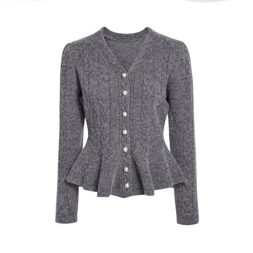 JJ지고트 아가일 진주 플레어 금사 니트 가디건 GRAN1CD431