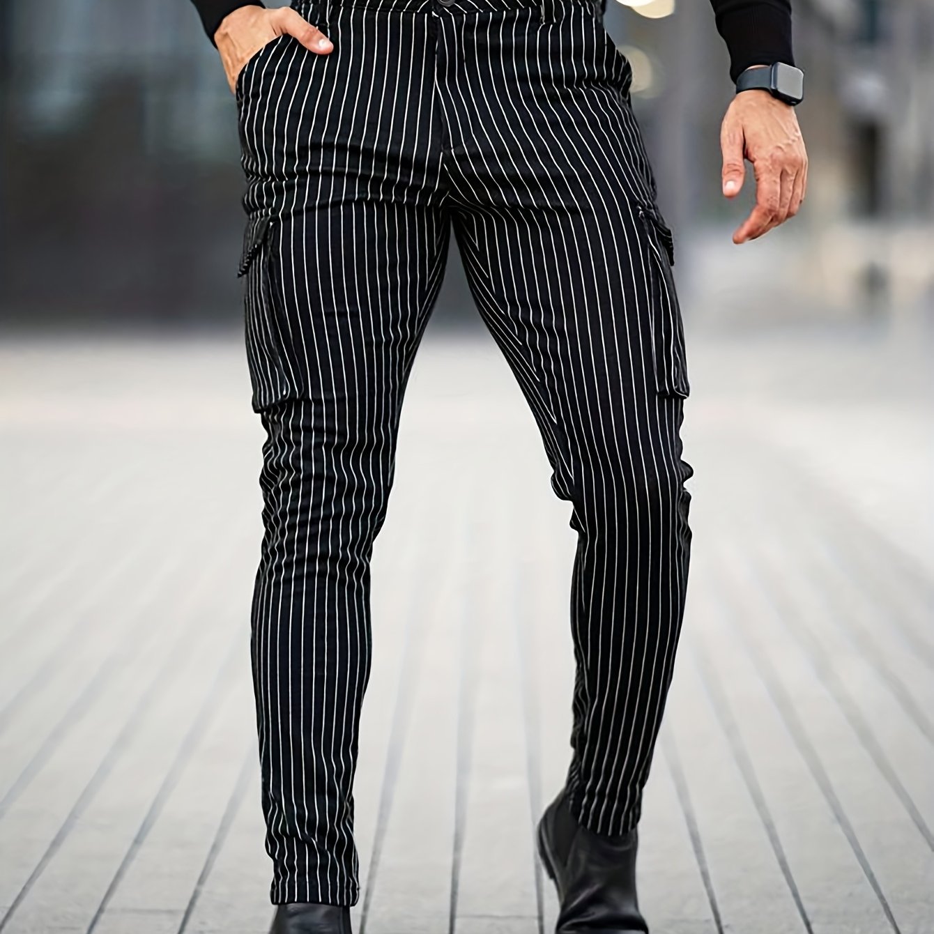 TEMU 남성용 스타일리시 캐주얼 멀티 포켓 카고 바지, 탄성 원단으로 제작, 사계절용, 신축성 있는 택티컬 작업복, 실용적인 여러 포켓 포함 | 블랙, 야외 활동, 하이킹에 적합
