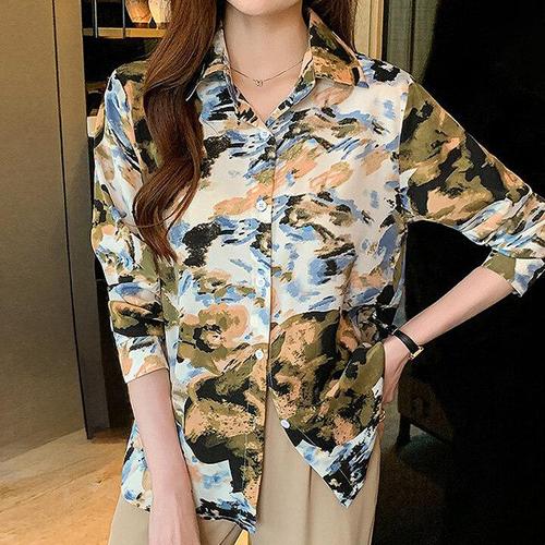 [트리아나] 소고 칠부소매 나염블라우스AH2BA07