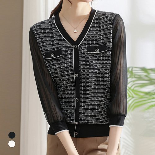 KARRA 트위드브이넥블라우스니트_A5S0627