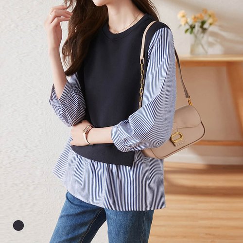 KARRA (77까지)스트라이프믹스백클로징블라우스_A5S0101
