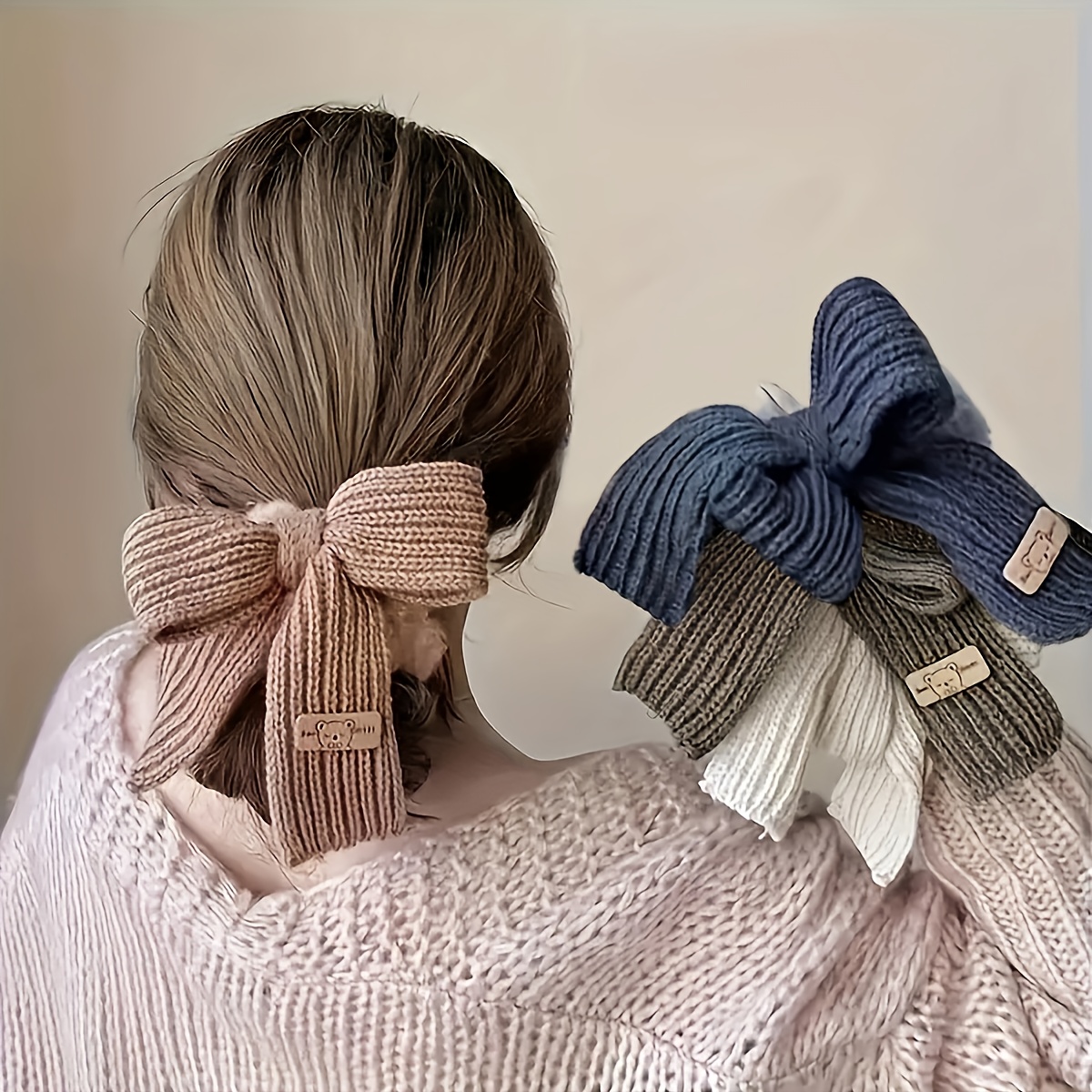 TEMU 여성용 우아한 리본 플러시 탄성 헤어밴드 4개 세트 - 블루, 브라운, 화이트, 블랙의 부드러운 포니테일 타이, 일상 스타일링 및 파티에 완벽, 파티 헤어 액세서리 | 우아한 헤어 액세서리 | 부드러운 질감 헤어밴드, 여성용 헤어 액세서리, 탄성 헤어 밴드, 여성용 헤어 밴드, 여성용 헤어 밴드, 여성용 헤어 밴드, 여성용 헤어 밴드
