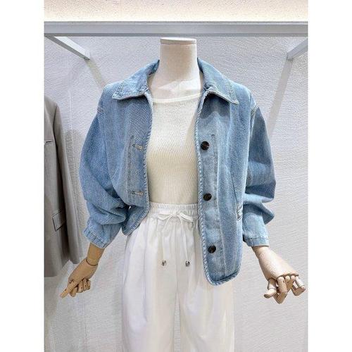 여성 빈티지 데님 재킷 봄 버튼업 한국 패션 블루 시크 봄버 아우터 탑 2025 스타일 캐주얼 여성 의류
