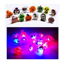 50개 LED 발광 반지 할로윈 파티 마녀 호박 유령 디자인 어린이 선물 및 사탕 가방 채우기용