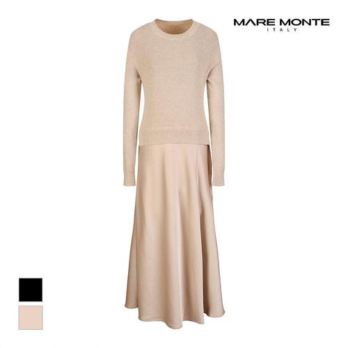 [마레몬떼][마레몬떼] 라운드넥 니트배색 원피스_M242MOP11P0