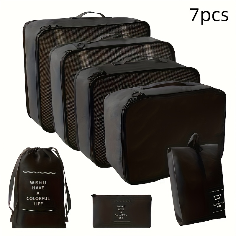 TEMU 모던 여행 정리함 7종 세트 (옷, 속옷, 신발, 각종 아이템 정리 및 패셔너블한 수납을 위한 동기 부여 문구 포함)