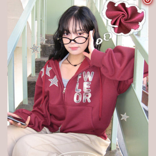 더핑크 / 호와 루즈핏 스타 체크 패치 기모 후드 집업