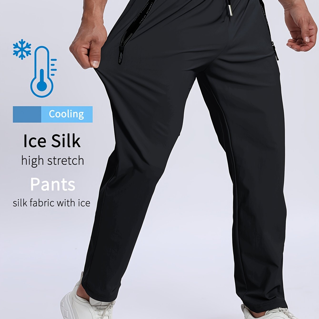 TEMU 남성용 흡습속건 통기성 스포츠 팬츠, 주머니 및 드로스트링 포함, 지퍼 디테일, 부드럽고 편안하며 피부에 친화적인 남성용 조거 팬츠, 가볍고 내구성 있는 애슬레틱 팬츠, 클래식 단색 활용도 높은 남성용 아이스 실키 섬유 원단 긴 바지, 얇은 속건성 아웃도어 트라우저, 야외 스포츠, 캐주얼 홈웨어, 피트니스 트레이닝, 거리 산책을 위한 완벽한 선택