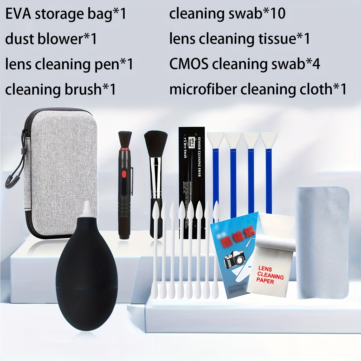 TEMU 20개입 전문가용 카메라 클리닝 키트 (렌즈 클리닝 펜, 블로워, 극세사 천, 면봉 포함) - DSLR, 미러리스, 스마트폰 호환 – 모든 카메라 및 렌즈에 적합, 내구성 좋은 클리닝 도구, 고품질 클리닝 도구