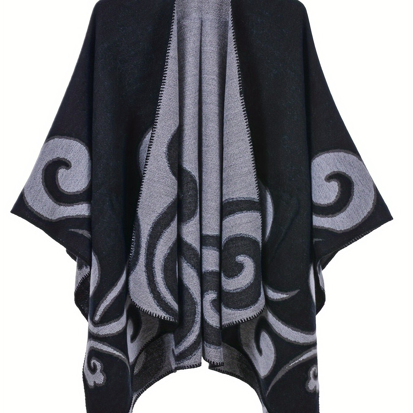 TEMU 마리해피 여성용 플러스사이즈 겨울 따뜻한 오픈프론트 가디건 - 블랙 & 화이트 건축 패턴 민소매 클로크 스타일 숄, 중동 영감 버튼리스 디자인 슬릿 디테일 레이어링, 코지 드레이프 원단