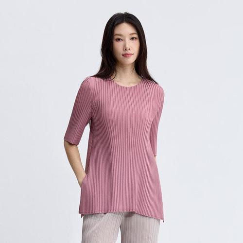 [플리츠미][플리츠미] 펀칭 플리츠 사이드 슬릿 티셔츠_EPTSM025024