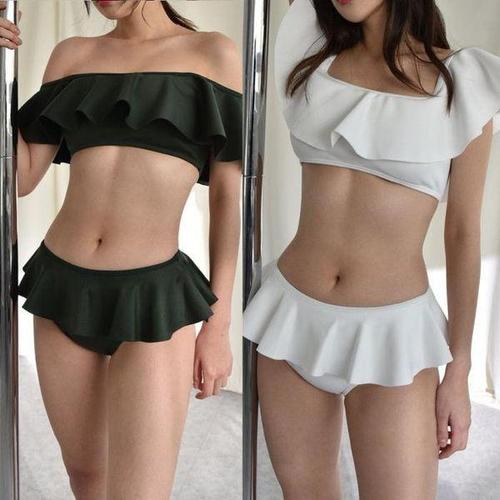 [셀러허브_여성트랜드패션]의상 폴키니 빅러플 폴웨어 폴댄스복 오프숄더 폴댄스 스퀘어넥 세트