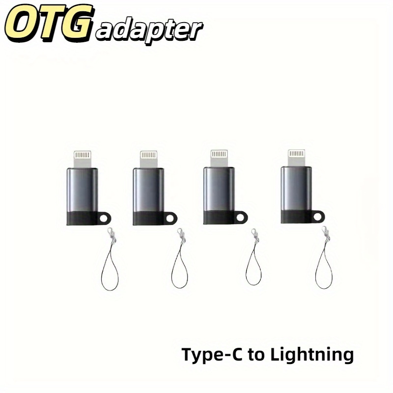 TEMU 아이폰용 충전 어댑터 충전 변환기에 적합한 4개 세트, Type-C to Lightning, Lanyard가 있는 합금 모델, 지능형 칩 충전. 전송. 거부 지연, 가벼우며 휴대하기 편리, 여행, 사무실, 차량, 및 포장에 편리한 소형 및 가벼운 디자인.