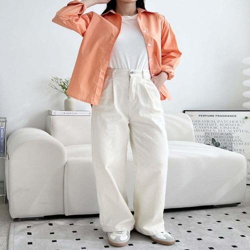 [보슈아]여성 데일리핏 세미와이드 코튼 핀턱 팬츠 면바지 뒷밴딩 SF1000W