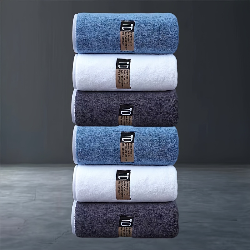 TEMU 5성급 호텔 욕실용 퀵 드라이, 뛰어난 흡수력의 타월 6개 세트. 크기는 29.13X13.39인치입니다. 초극세사 핸드 타월은 파란색, 회색, 흰색으로 제공되며, 매우 부드러운 질감을 가지고 있습니다. 가정, 스포츠, 캠핑, 욕실 및 얼굴 세척에 적합합니다.|스포츠|빈티지|수건