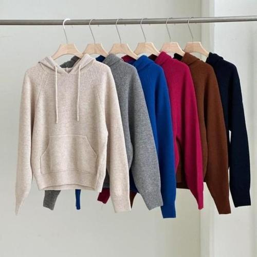 [다잇템_패션]여자 라글란니트 자주색 후디 메리노울 티셔츠