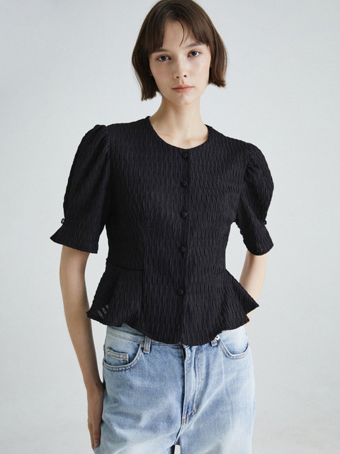 [더아이잗] 퍼프 슬리브 페플럼 블라우스 IRTP0BL721