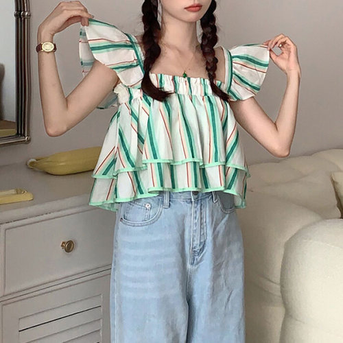 슈팅스타 / 스퀘어넥 트럼팻소매 크롭 블라우스 656932