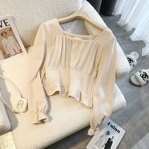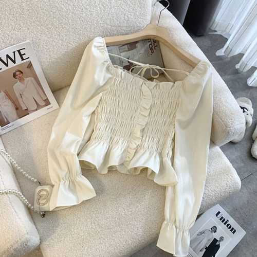 슈팅스타 / 스퀘어넥 주름 크롭 숏 블라우스 709735