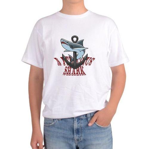 [에이치플러스몰]반팔 라운드티 상어 SHARK 닻 해양 상어잡이
