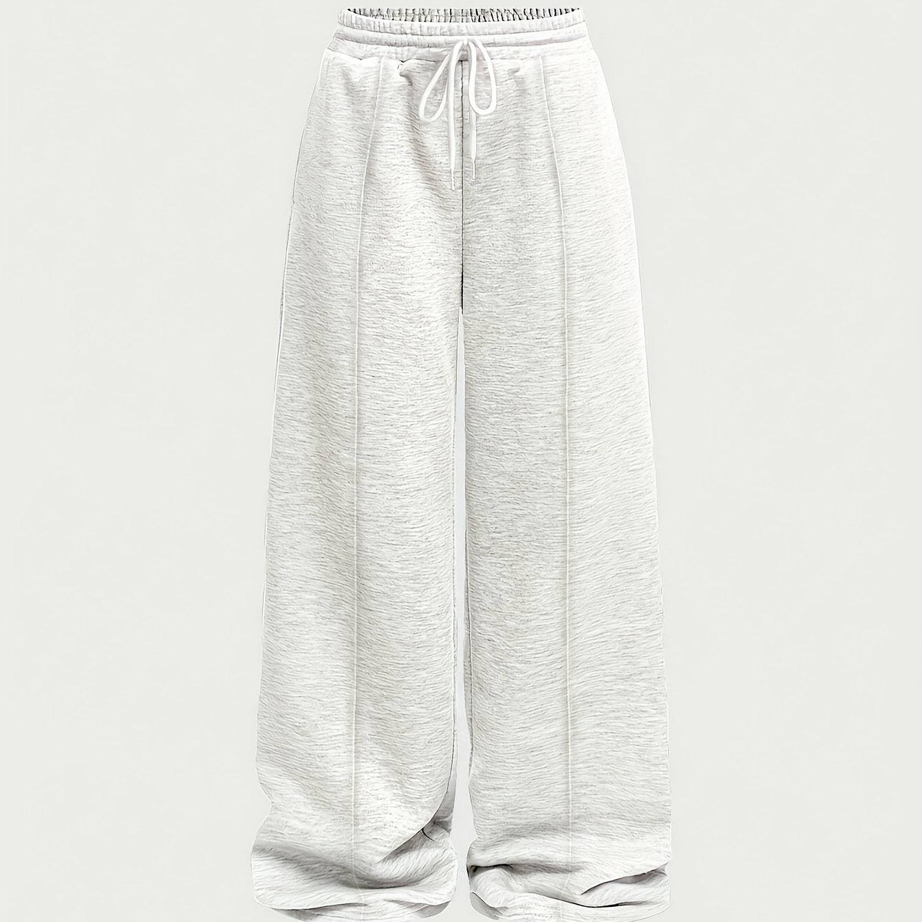 TEMU 여성 캐주얼 와이드 레그 팬츠 (탄성 드로스트링 허리) - 포근한 기모 안감, 사계절용 바지, 단색, 편안하고 스타일리시한 캐주얼 복장, 편안한 의류 | 편안한 핏 팬츠 | 탄성 허리 밴드