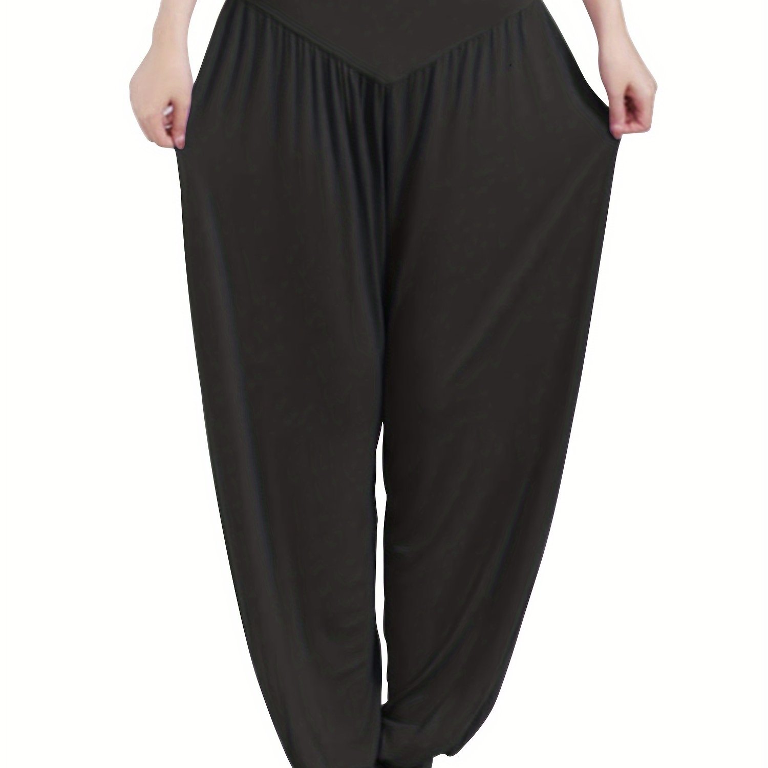 TEMU 여성의 우아한 검은 하렘 팬츠 - 루즈핏, 와이드 레그, 봄/여름/가을에 편안함, 캐주얼 웨어, 편안한 의류 | 와이드 레그 팬츠 | 편안한 핏