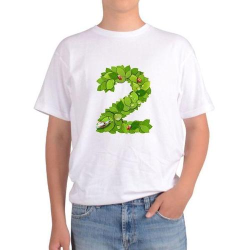 [에이치플러스몰]글자그림 남여공용 모임티셔츠 two 나뭇잎 숫
